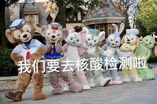 他们上午很开心地发了朋友圈,然而下午突然传出消息,说有一个确诊病例昨天曾经去迪士尼玩了,所以那会儿迪士尼封闭,所有人不做核酸不给出门: