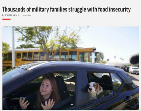 美联社引述美国民间机构“喂饱美国”的数据称,长期的食品不足现象已存在多年,有孩子的低阶现役军人首当其冲地受到影响。