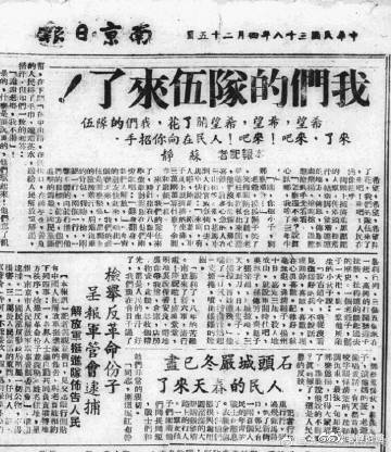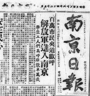 24 日:解放军进入南京,百万市民夹道欢呼!