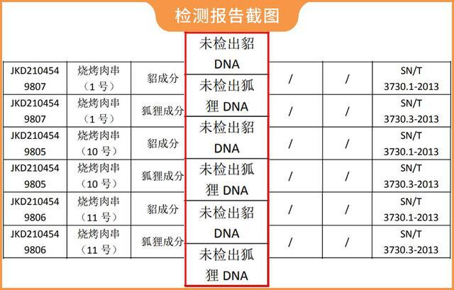 更离谱的是,还有.3.款羊肉串(1、10、11.号),既没有检出羊源性成分,也没有检出鸭源性成分。