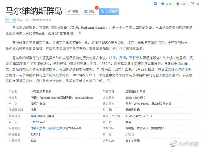 @卢诗翰:#中方支持阿根廷对马岛主权的正当要求#