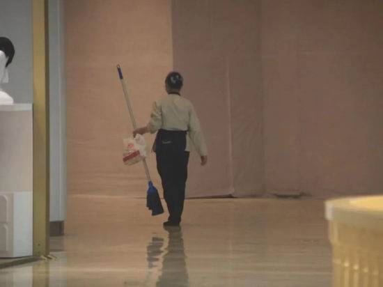 有很多清洁工为了挣多一点钱,会选择连上两个班,从早上七点开始上班,直到晚上十一点下班,站立工作 16 个小时,只有在早上十点半和下午四点半各有半小时的吃饭时间,一个月的工资是五千块,不管吃住。