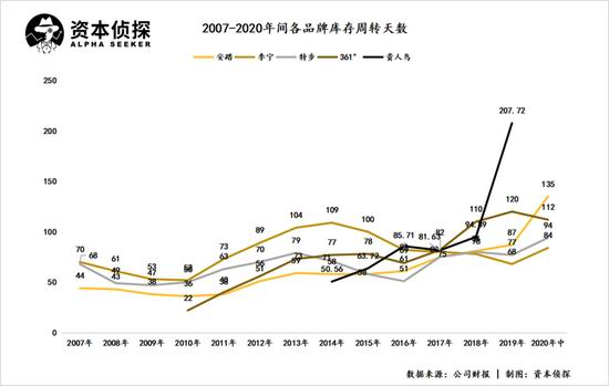 "2012.年行业爆仓,晋江鞋停产还能卖.3.年。".面对行业寒冬,喜得龙、金莱克和德尔惠选择直接转型时尚,结果由于品牌定位失败,无力对抗.ZARA、H&M.等快时尚品牌,加重了库存危机,反而拖垮了自己。2011.年,鸿星尔克因财务造假停牌,2016.年匹克退市,贵人鸟和.361°.元气大伤,特步也直到.2017.年才完成库存清理。