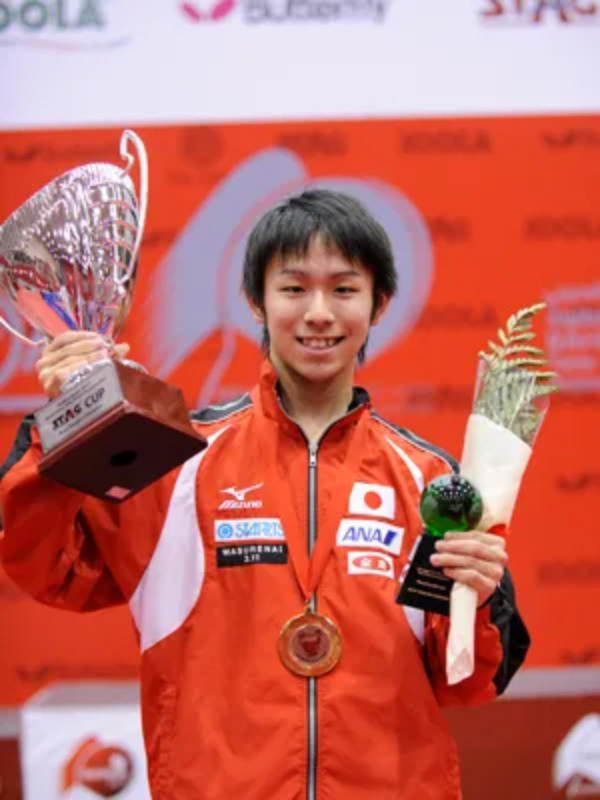 --2010.年,他代表日本拿到了新加坡青奥会的男子单打和混双金牌。2011.年,又在巴林举行的青年世乒赛上再度拿下男单冠军。