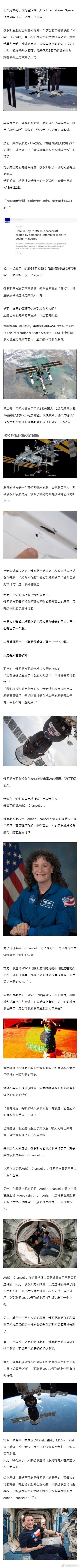 » “2018 年国际空间站漏气 “事故的真相,意外而刺激