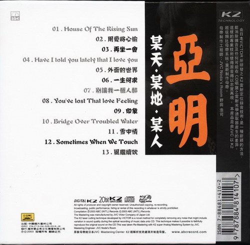 亚明 (A-Ming) 一位外貌不起眼的爵士歌手,却有着最深层的音乐质感,在香港音乐界中有着多年的表演经验,也担任过许多地方的音乐总监,如:香港亚洲电视台、中国深圳竹围饭店、航空酒店、深圳湾大酒店、罗文、汪明荃和徐小凤等知名歌手的巡回演唱会、美国各大夜总会和上海百乐门歌舞厅…等。丰富的音乐素养及舞台经验,让他成为两岸三地知名的音乐人。他浑厚沙哑的嗓音,特殊的唱腔,歌曲的诠释上有着不一样的味道。他的爵士乐就像呼吸,这么存在着、自然的、慵懒的、恬静的,从他的歌曲中,透露出铁汉柔情,一种男人对事情的执着,也表现出历练的沧桑,他对音乐的爱、音乐的迷、音乐的痴,相信都能从他的《某天.某地.某人》的这张爵士专辑中听的见也体会得到。