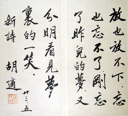 以前只知道胡适先生是个思想家,想不到他的书法亦有如此的功底,真的令人赏心悦目。