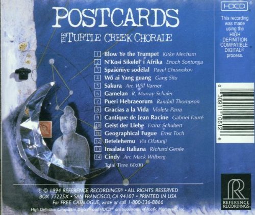 致力于HDCD推广工作的RR公司,其产品以录音效果奇佳著称,毫不夸张地说,它家的张张CD都是精品。这张合唱专辑《明信片》可是上了TAS榜的天碟,