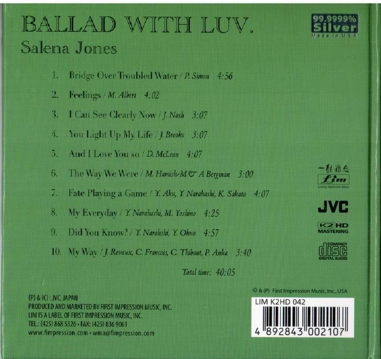 著名黑人女歌手赛琳娜琼斯的《爱的情歌》。Fim用K2 HD技术再版JVC原始模拟母带,音效更上一层楼!