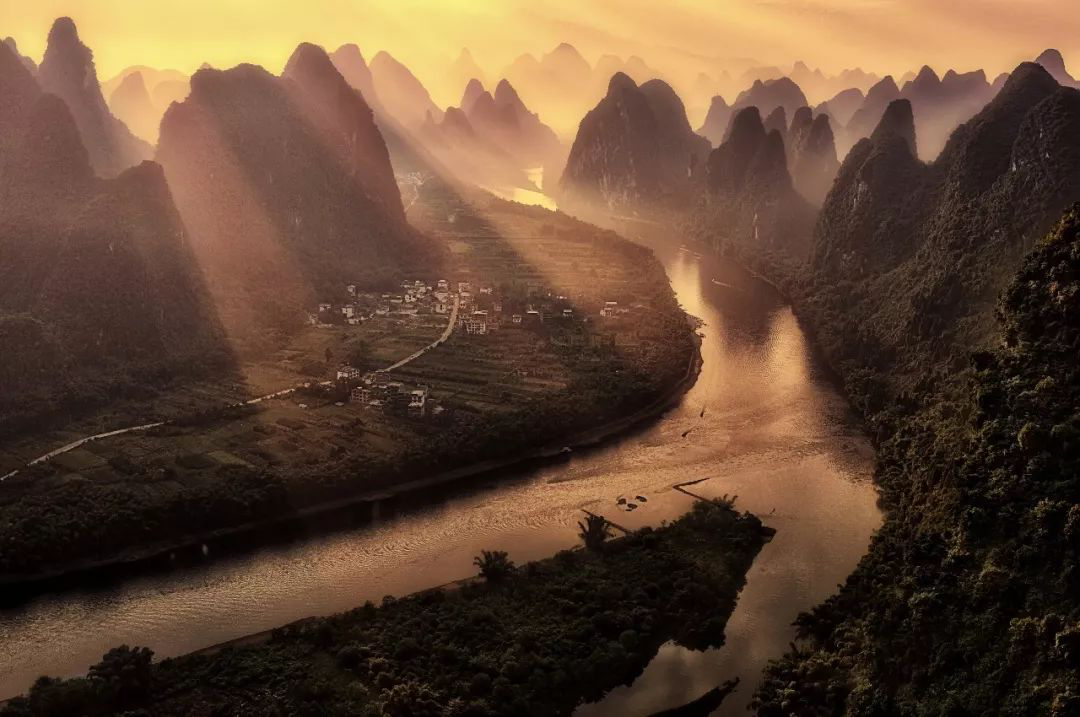 ▲ 清晨,宛若青罗玉带的漓江,温暖的阳光为她披上一裘金色的霓裳。摄影/王文伟