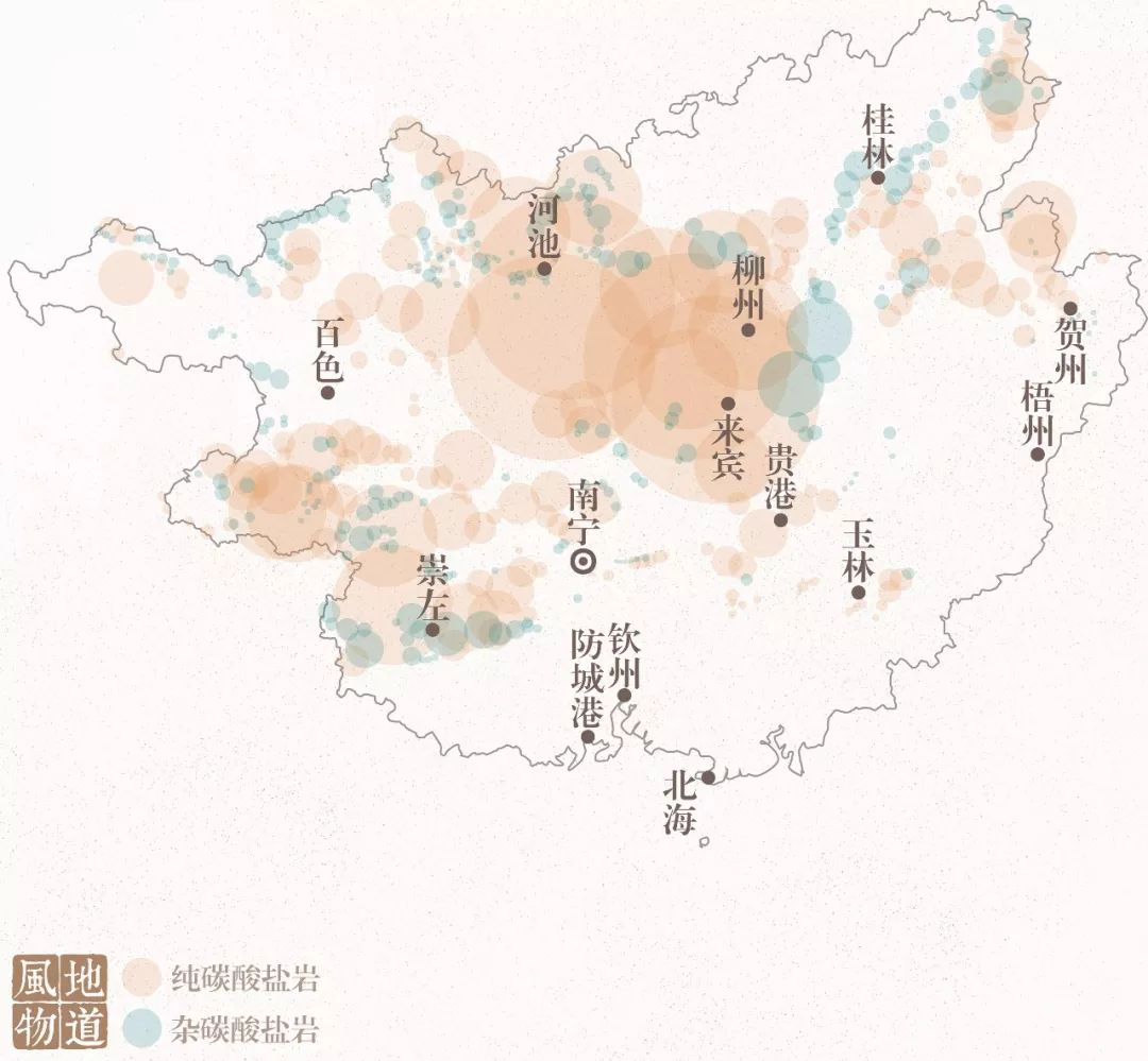 ▲ 广西岩溶地貌分布示意图。绘图/刘昊冰