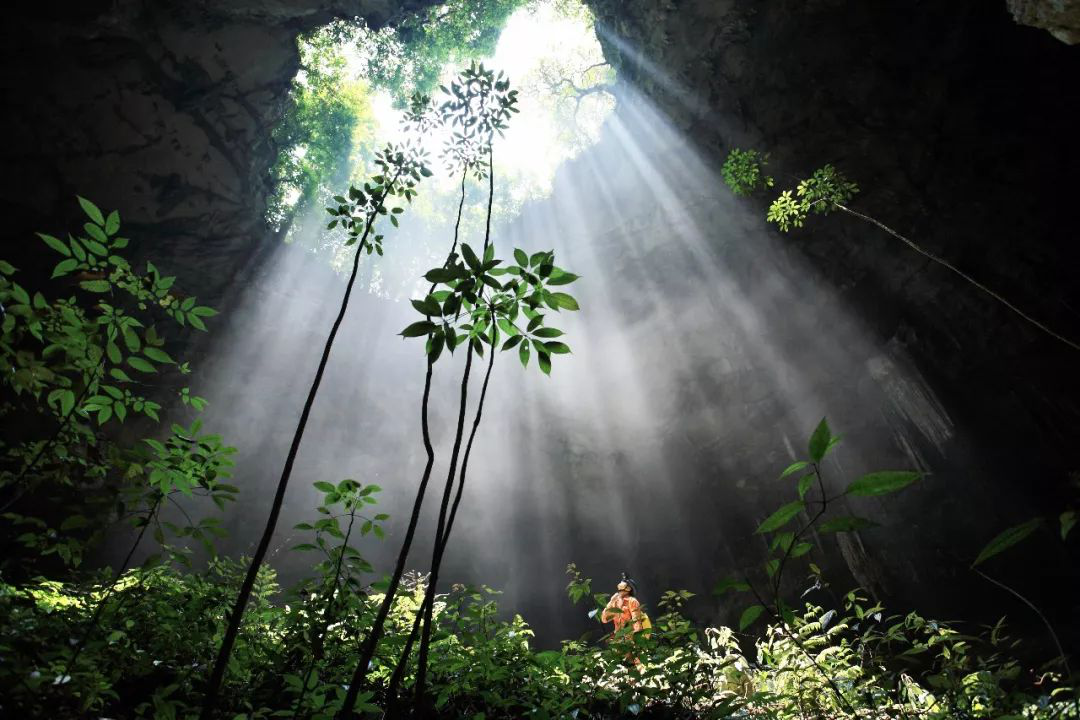 ▲ 火卖村蜂子荡一洞三坑的坑壁几乎是垂直的。天坑底部,有少数勇敢者才有缘得见的地下原始森林——这可是世界上最大的地下原始森林。摄影/李晋
