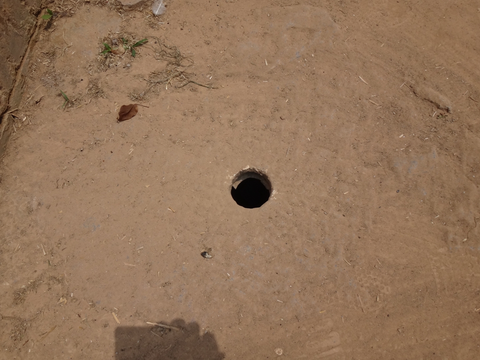 面最低处有一个约十公分直径的洞,水流下去就能渗开的。