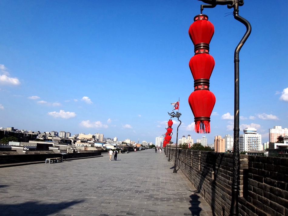 西安城墙我去年去的,这段城墙的确是好大好雄伟,还有很多人在城墙上骑自行车。