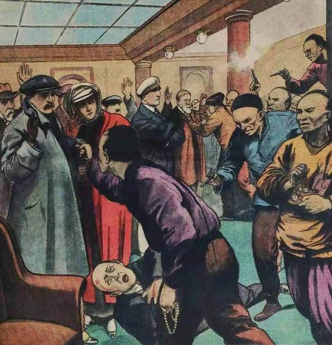 正当戏剧进行到高潮之时,四名西装革履的华人掏出别在腰间的柯尔特左轮手枪,对着看戏的人群疯狂射击。