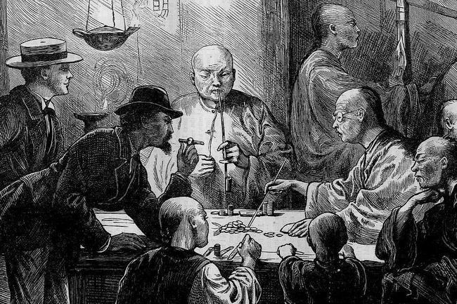 在国内饱受鸦片毒害的中国人,把他们高超的制毒技术又带回了美国,一个黑帮的地下烟馆每年能带来.25.万美元的收入,而当时一个华人劳工的月薪只有.20.美元左右。