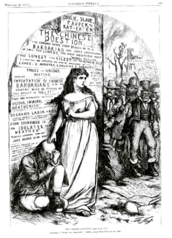 彼时南北战争刚刚结束不久,美国先后发生了几次经济危机,大量涌入的廉价华人劳动力抢去了不少白人的饭碗。这些白人眼中留着."猪尾辫"、说着奇怪语言的."食鼠者".成了他们不幸生活的替罪羊。