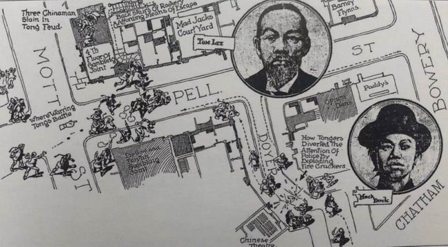 ?当年《纽约世界报》绘制的华人黑帮交战示意图。