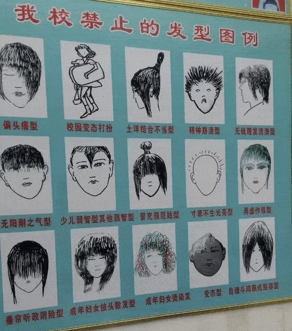 连他早年标志性的发型,现在也被学校命名为."少儿弱智型"。
