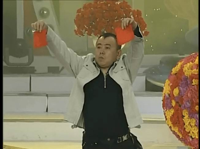这个高举双手的动作,潘长江春晚上的小品《三号楼长》中也曾表演过一次。