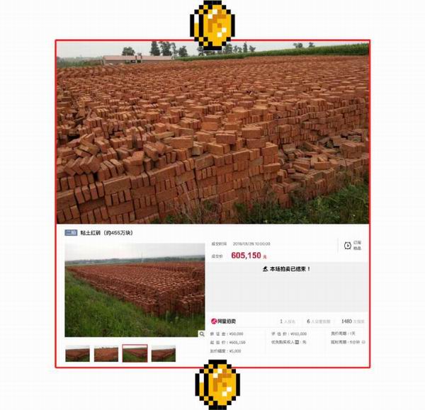 这是一批粘土红砖,足足有.455.万块,评估价.91.万元,最后以.60.5.万元成交。咱说,这纯纯是捡漏了啊。