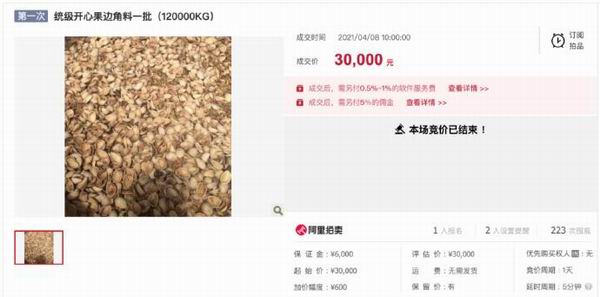 在阿里拍卖,一切看起来毫无用处的东西都可以被重新估值,比如这堆开心果果壳。