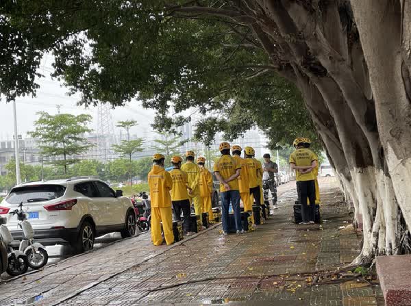 送外卖成为一些不愿进工厂的年轻人的选择,但这条路并不好走。图为东莞市街头的外卖员。摄影:张楠茜