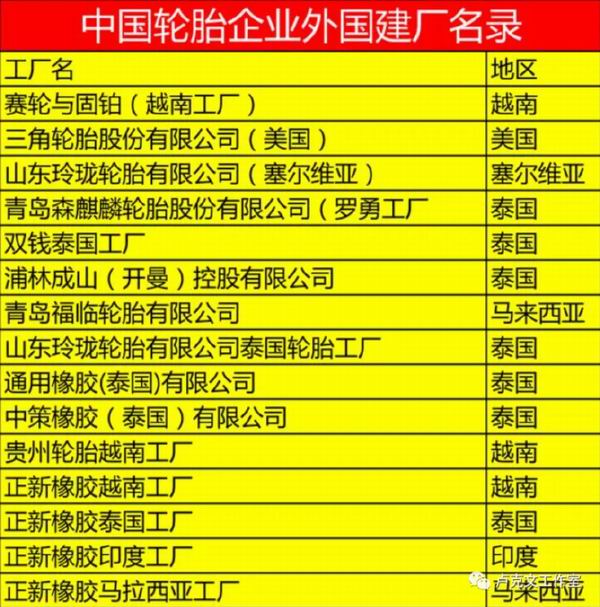 海外建厂的部分中国轮胎企业