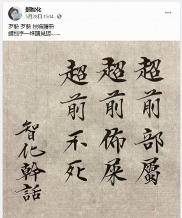 郑智化的觉悟就比较一般,直接讽刺台湾当局夸自己针对疫情."超前部署",其实是."超前部屎."。