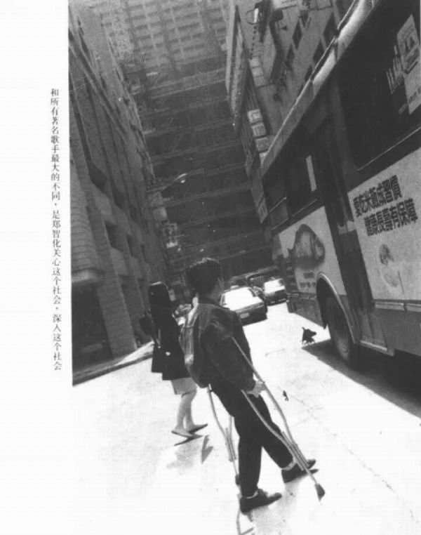 在郑智化的自传中有一张照片,他拄着双拐,正走向面前的公交车。