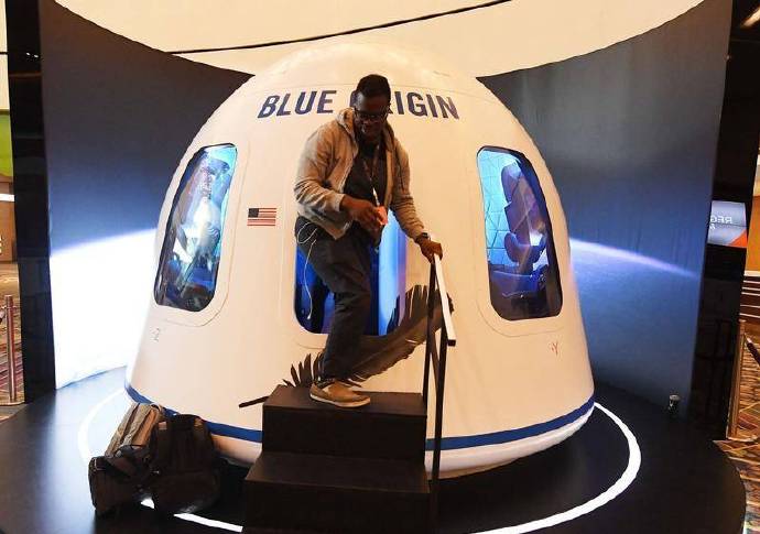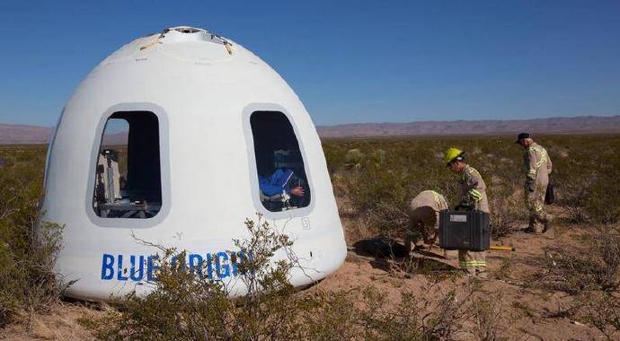 2018 年 12 月,“蓝色起源” 公司的航空飞行器顺利着陆,太空舱里安放了试验用的假人。
