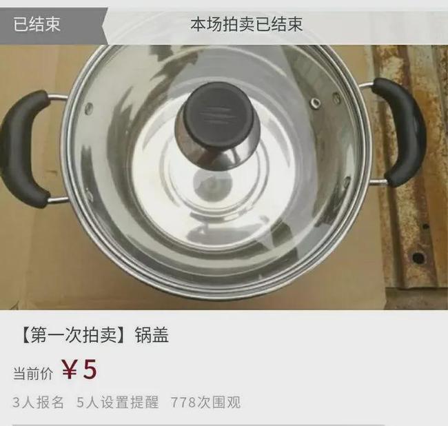 司法拍卖的严肃程度,被这些锅碗瓢盆温柔化解。3.个人报名争夺一个.5.块钱的锅盖,基本上没有硝烟味,整场拍卖似乎就在拉家常中有了结果。
