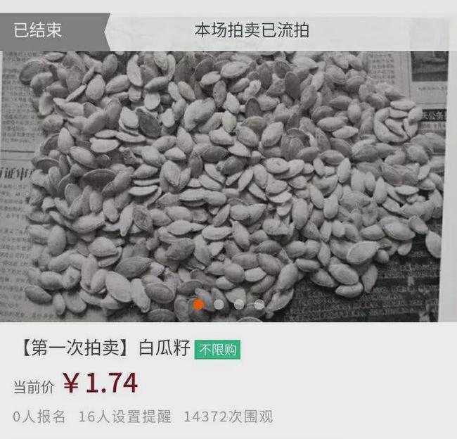 第一次在上面看到.14372.人次围观拍卖.1.74.元的白瓜籽,我以为自己的手机中了病毒。