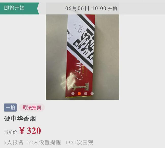 司法拍卖的中华烟上面还有法院的纪念版封条,增加了稀缺属性。