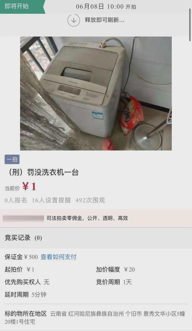 起拍价往往跟上面覆盖的灰尘成反比,比如这台洗衣机,如果不是地址显示在云南,我还以为是从阿富汗拉过来的拍品。