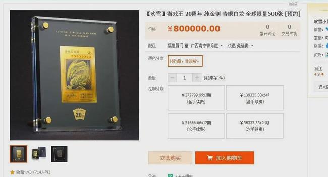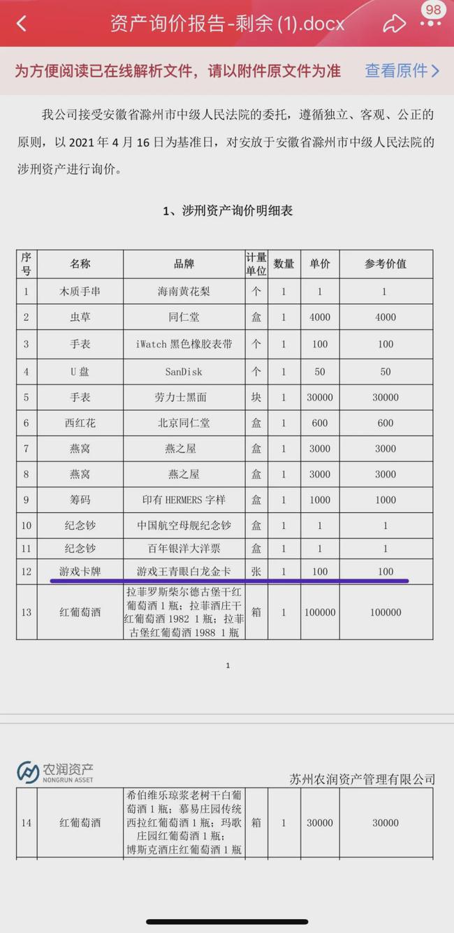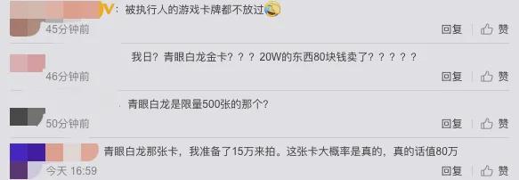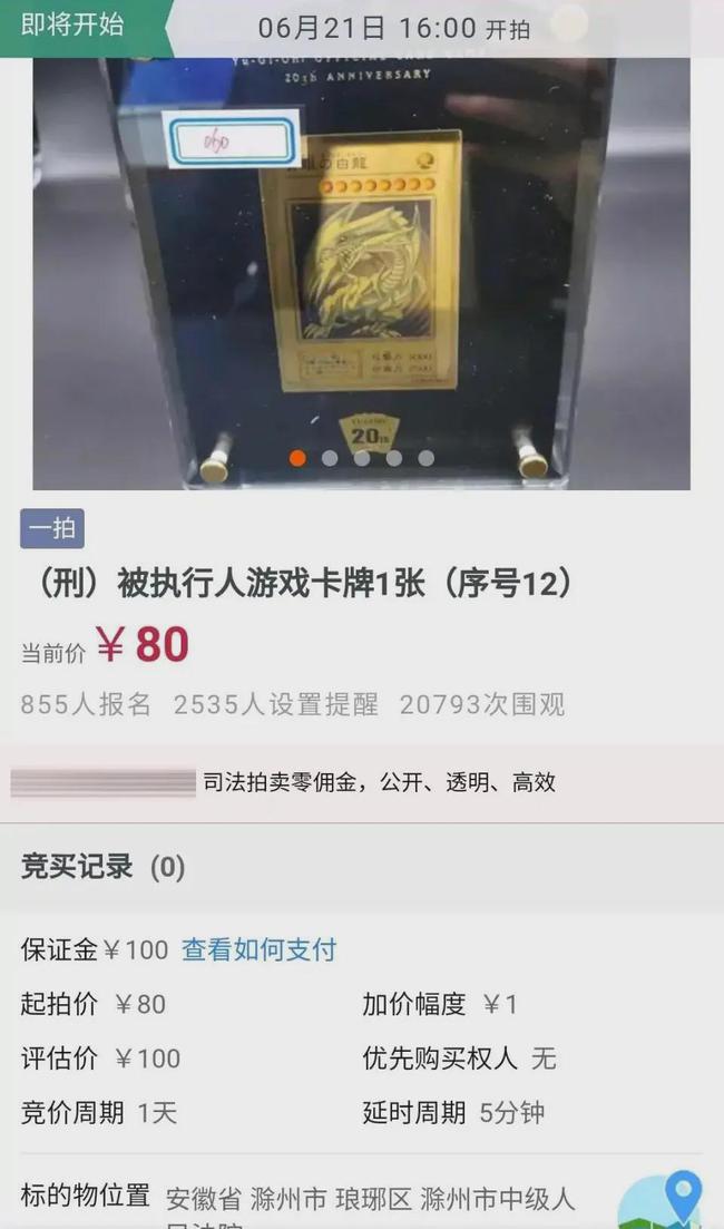 安徽法院上架了全球限量版游戏王青眼白龙卡,淘宝市场价.80.万。