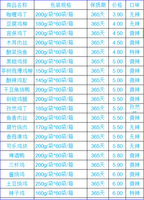 前述料理包生产厂家高管王一飞提供的产品批发价目表显示,大部分料理包的单价都在 10 元以下,甚至 5 元以下,比如 200g / 袋的咖喱鸡丁、宫保鸡丁出厂价分别为 3.9 元和 4.5 元。