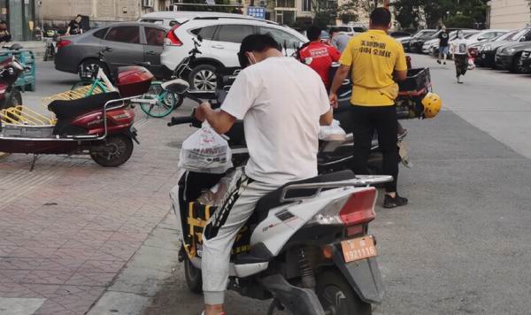 图.|.白衣的送餐小哥已经取了餐,准备出发