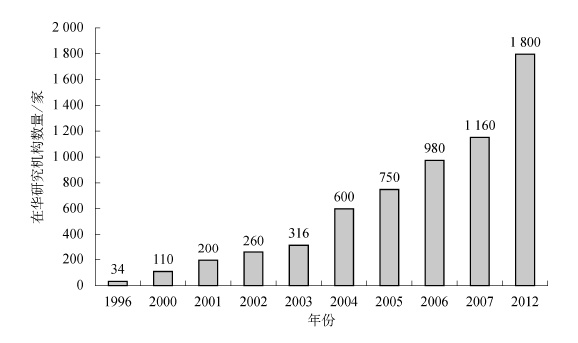 1996~2012.年,跨国公司在华研发机构数量