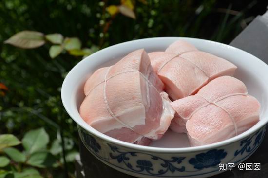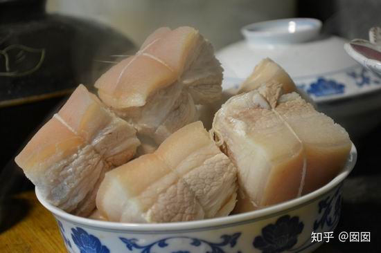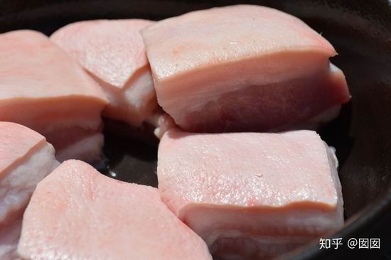 早上去菜场,挑肥瘦相间的五花肉,不去皮,切方块。