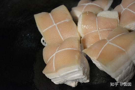 还有一个细节前面忘记说了,讲究的话可以照做:买回来的五花肉如果是没有去皮的,切块焯水前可以用刀侧过来多刮几次猪皮表面,可以去掉猪皮表层不干净的腻子。一般要用到带皮五花肉做的菜,买回来我会先这样处理一下。