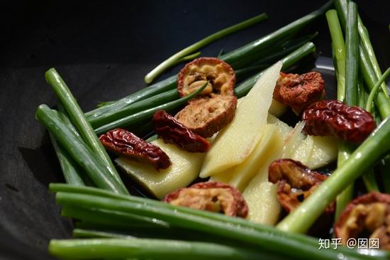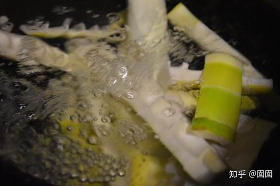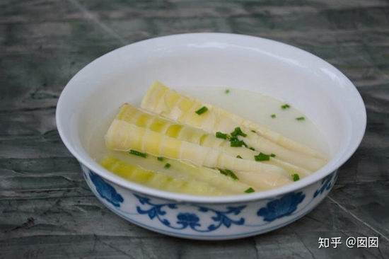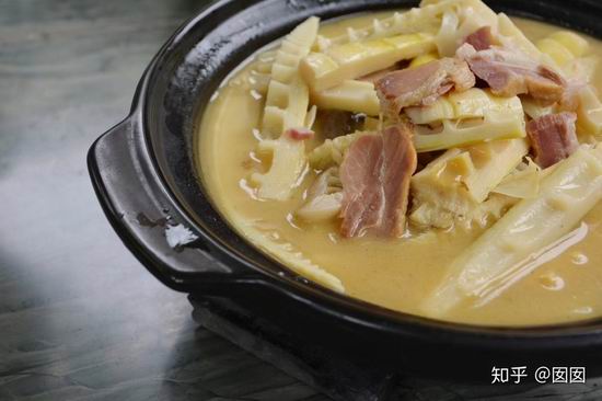 咸肉开片煎出香气,加热开水炖至汤发白,春笋下进咸肉汤里煮至竹笋的清香鲜甜味儿融入汤里。