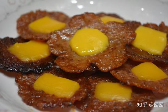 装盘,到这一步已经很有看相了,不过这还没完呢,还得再腾盘蒸上一个多小时,免得这肉太油腻且泛干。