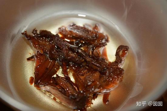 煮至非常浓稠且泛焦糖色时,再倒入一小碗烫开水调出深棕色泛红的糖水。