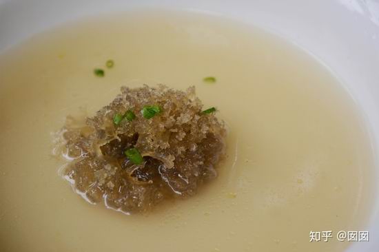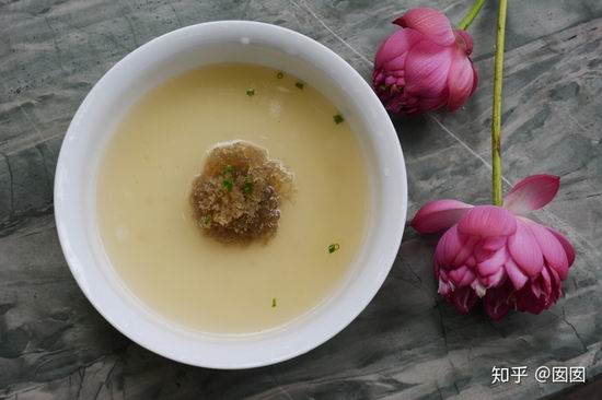 这道菜费时之处在于很多前期准备工作,一来是汤底的熬制,二来是竹燕窝的清洗。一般一锅好的汤底,从处理食材到熬制,时间不会少于四个小时。刚采回来的竹燕窝也需要经过来来回回的仔细清洗,才能将上面的竹沫等杂物彻底清理干净。
