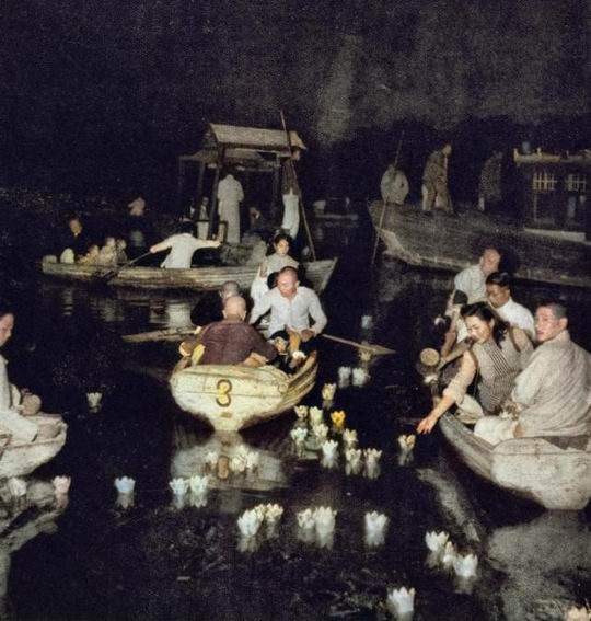 旧时北海公园的湖面上放莲花灯