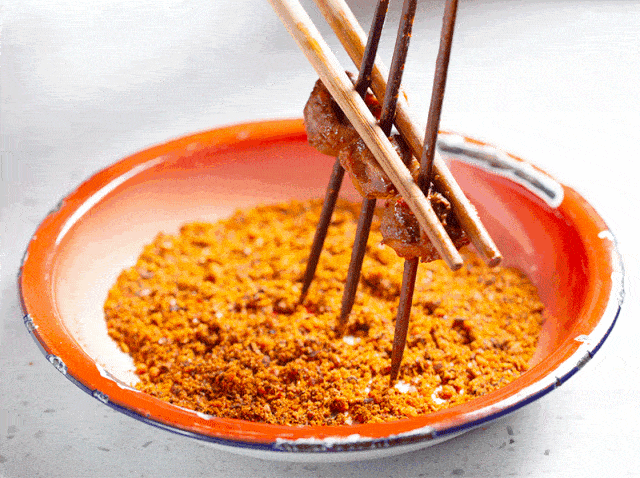 除了基本的牛羊肉,天上飞的、地上跑的无所不能烤。烤制的手法会根据食材特点量身定制,一般分为."蘸、刷、撒、烤、翻、压".几个关键点。
