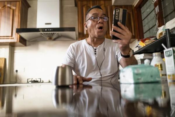 退休之后,乔康强很自信地入驻了这个短视频账号。一开始,也很严肃,一本正经对着镜头「嘀哩呱啦」。在乔凌玲的「疯起来」的攻势之下,乔康强也放开了自己。他穿一件粉色的西装薄外套,宽松的牛仔裤和白色的板鞋。直播的时候,总是他在聊天,直播间里还要靠着他的歌声撑起来。他勤于练歌,我和高采萍聊天的背景乐便是他的歌声,走在路上,他也常哼两句,要把歌练好,献给直播间里的「宝宝们」。夜里睡不着,他就上网学直播,他进去一个排名靠前的主播直播间里,苦学唱歌的动作和姿态,虽然对方是个女孩。