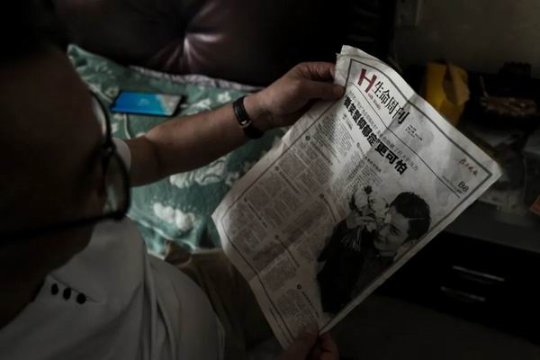 乔爸翻出一张收藏的报纸,上面有乔任梁的照片和抑郁症相关的文章