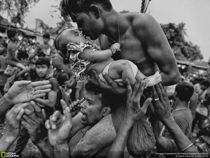 7、「热爱生命」,印度教徒在Charak Puja节日期间亲吻他刚出生不久的儿子,传统习俗会用铁钩刺穿父亲的皮肤,以痛苦的牺牲象征对于孩子的爱;
